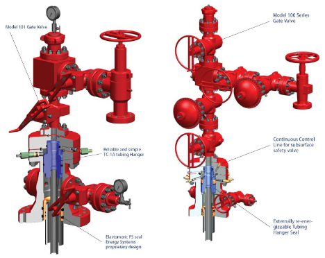 Developed for the most severe production requirements. Includes Energy Systems' patented metal-to-metal seal technology and the totally non elastomeric Model 120/130 gate valve.